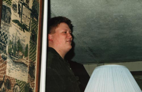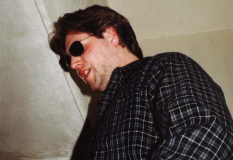 johnny stands next to the wall