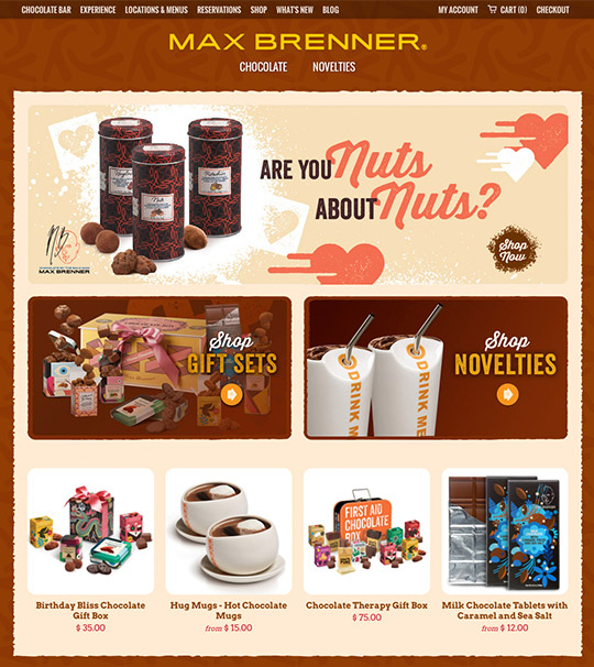 We just wrapped up a quick little Shopify shop for everyone’s favorite bald chocolate man, Max Brenner. The task here was something we’ve been hearing a lot lately: client has a shop on another platform and wants to switch to Shopify. So we mimicked the style of their previous shop and got them up and running pretty quickly.