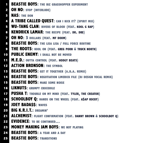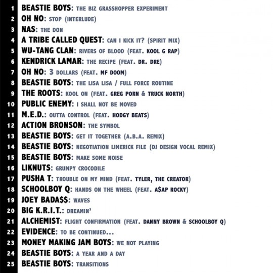 This is Rap Mix 2012, and you can tell from the cover that there’s a strong Beastie Boys presence this year, in remembrance of MCA.