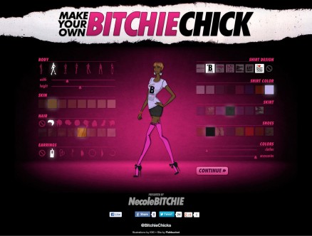 Flash-based avatar creator that lets users customize their own Bitchie Chick. We did the design and Flash animation. This was basically The Last Fishbucket Flash Project. (tear)