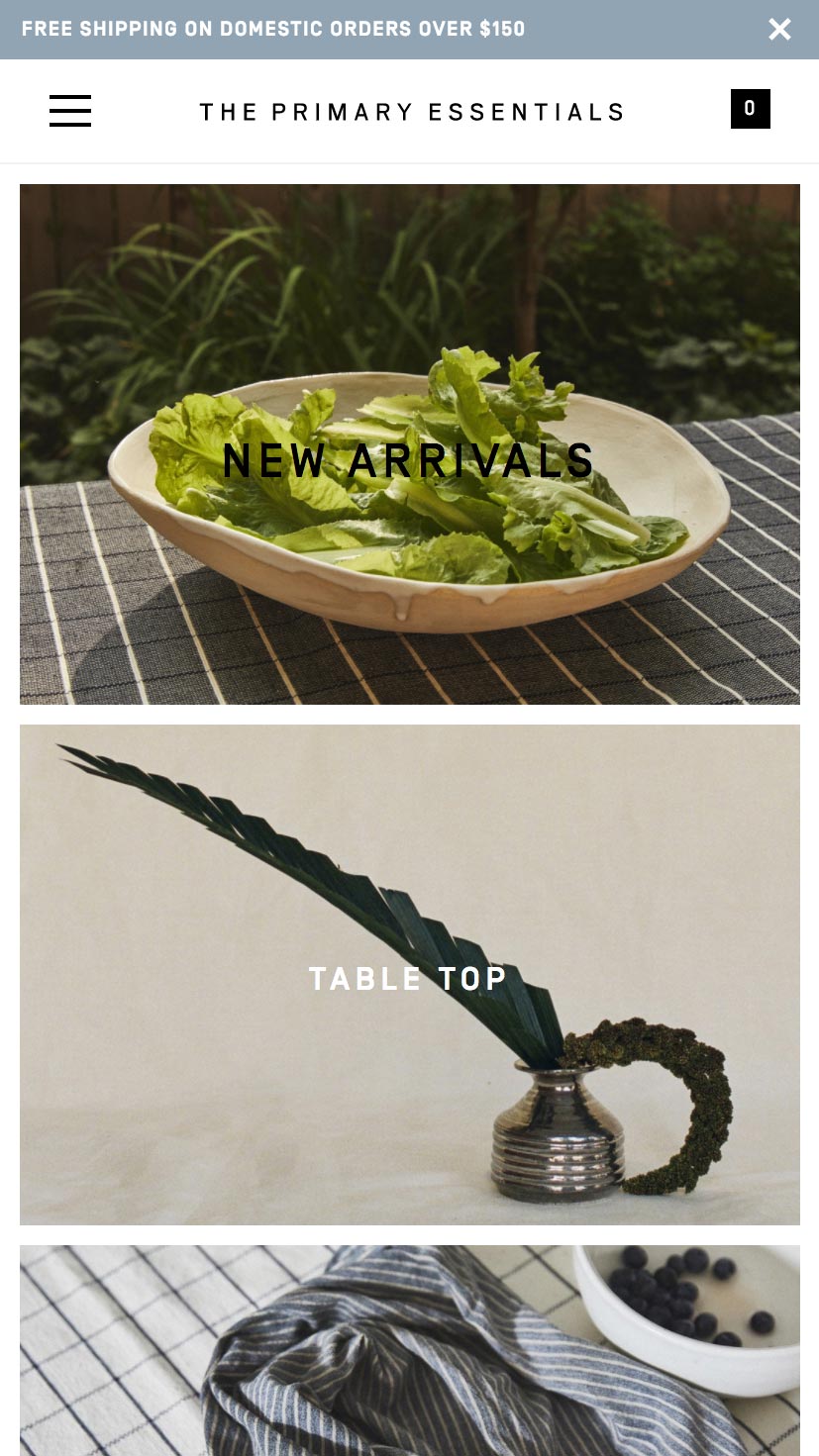 The Primary Essentials Homepage (Mobile)
