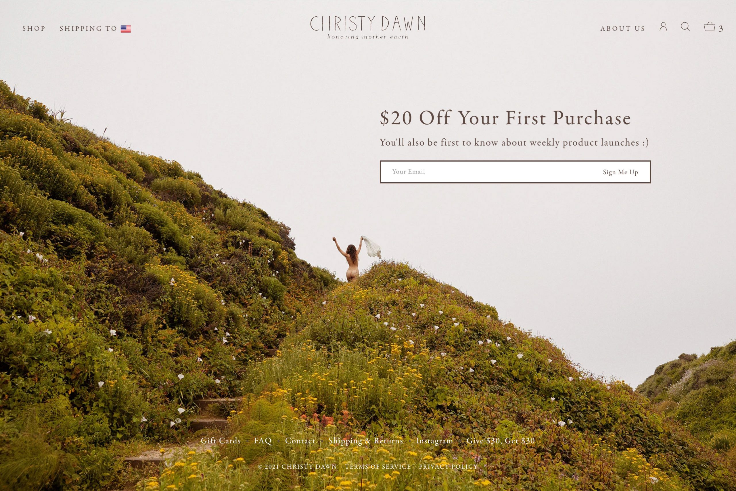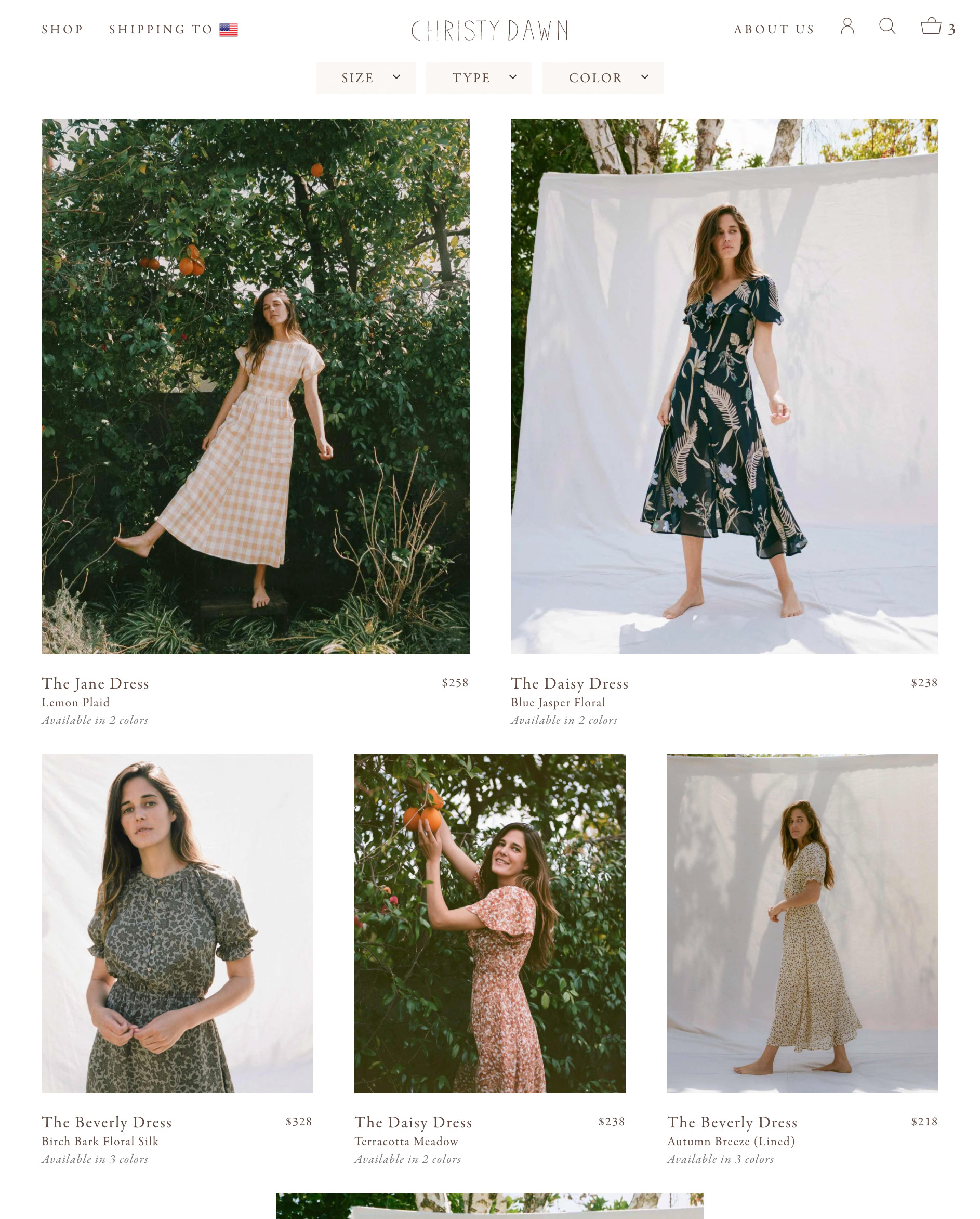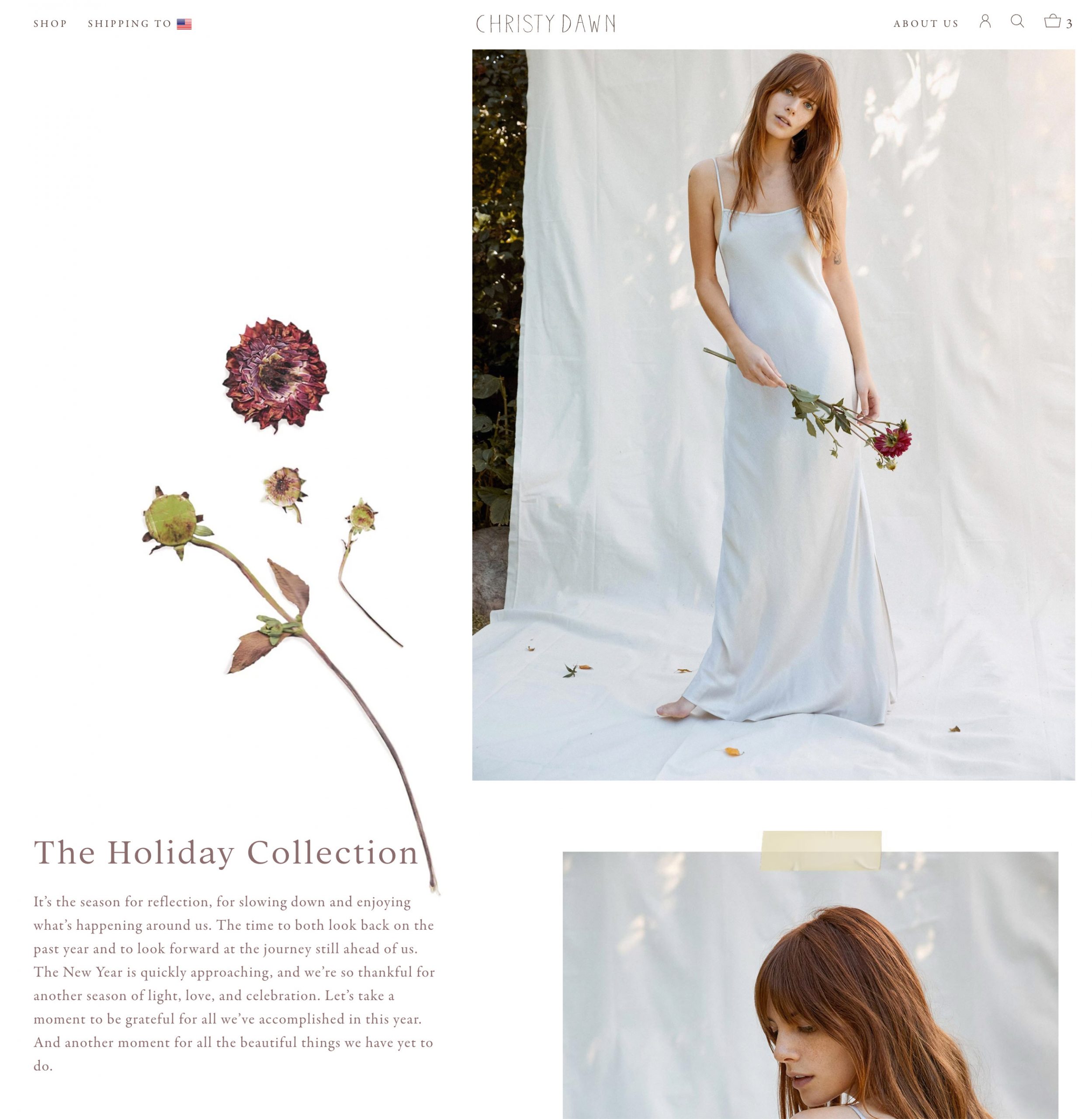Christy Dawn August 19, 2024 By steve Homepage (2024)Collection page (2021)Signup page (2021)Product page (2021)Interactive feature within a journal postHoliday collectionMeet the teamSpring collection